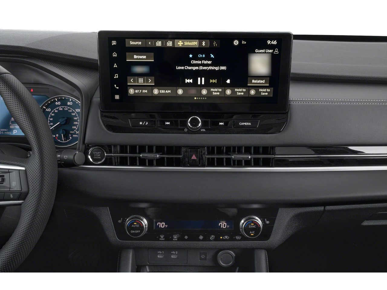- Radio: AM/FM 12.3" Navigation w/Smartphone-Link -inc: wireless Apple CarPlay and Google Android Auto, Mitsubishi Connect w/5-year safeguard trial and 1-year remote services trial (mobile app enrollment required), Bluetooth® wireless technology, steering wheel controls for phone, audio and voice recognition, 2 USB-C ports, SXM 360L audio w/90-day SXM all access subscription and SXM traffic & travel link w/90-day subscription and dynamic sound Yamaha premium system w/8 speakers